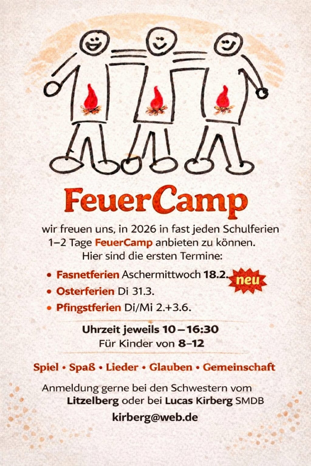 - 3 Feuercamp Termine für Kinder (8 - 12 Jahre) 2026 auf dem Litzelberg (Flyer) | |||||